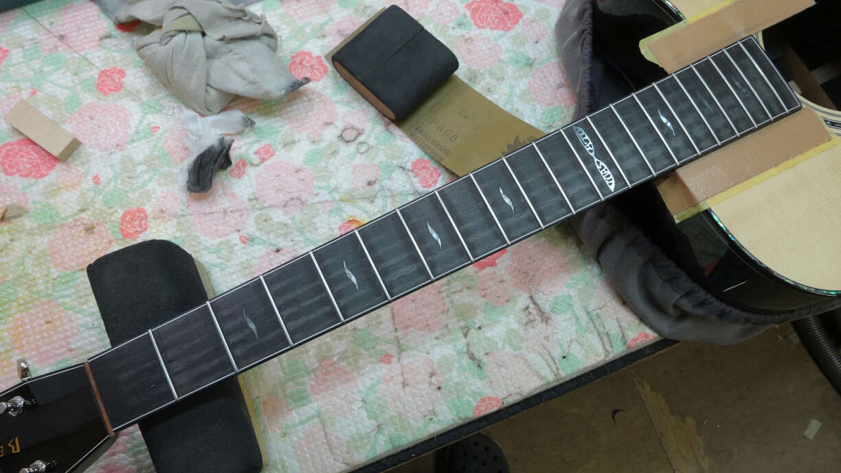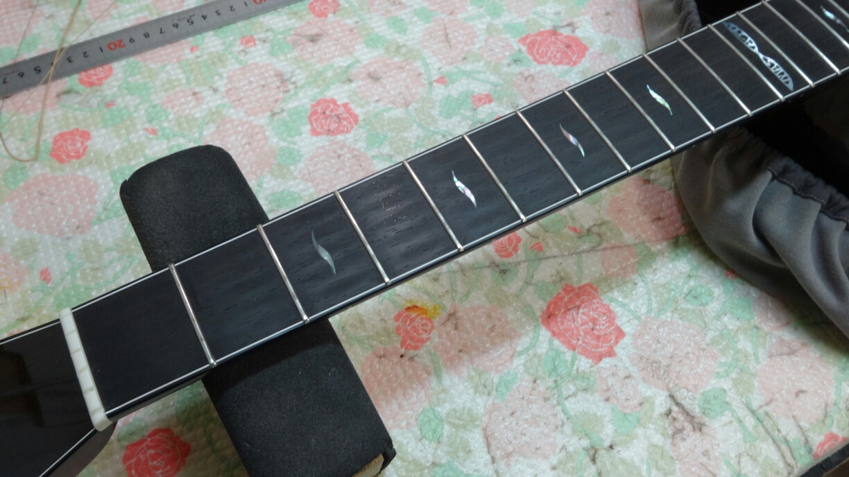 出来たて状態での環境変化でしょう、ネックの反りでビビり発生。