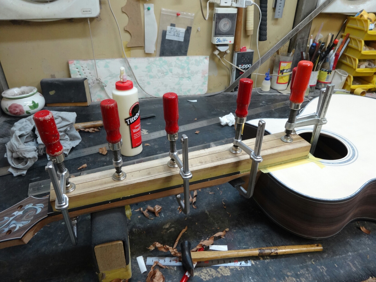 チャンネルのメリットはC鋼自体が反りに対し効果的、C鋼を曲げるので締めてもねじれる様な反り方をしない、ヘッドの折れの心配がない、ホール側からの調整なので楽。