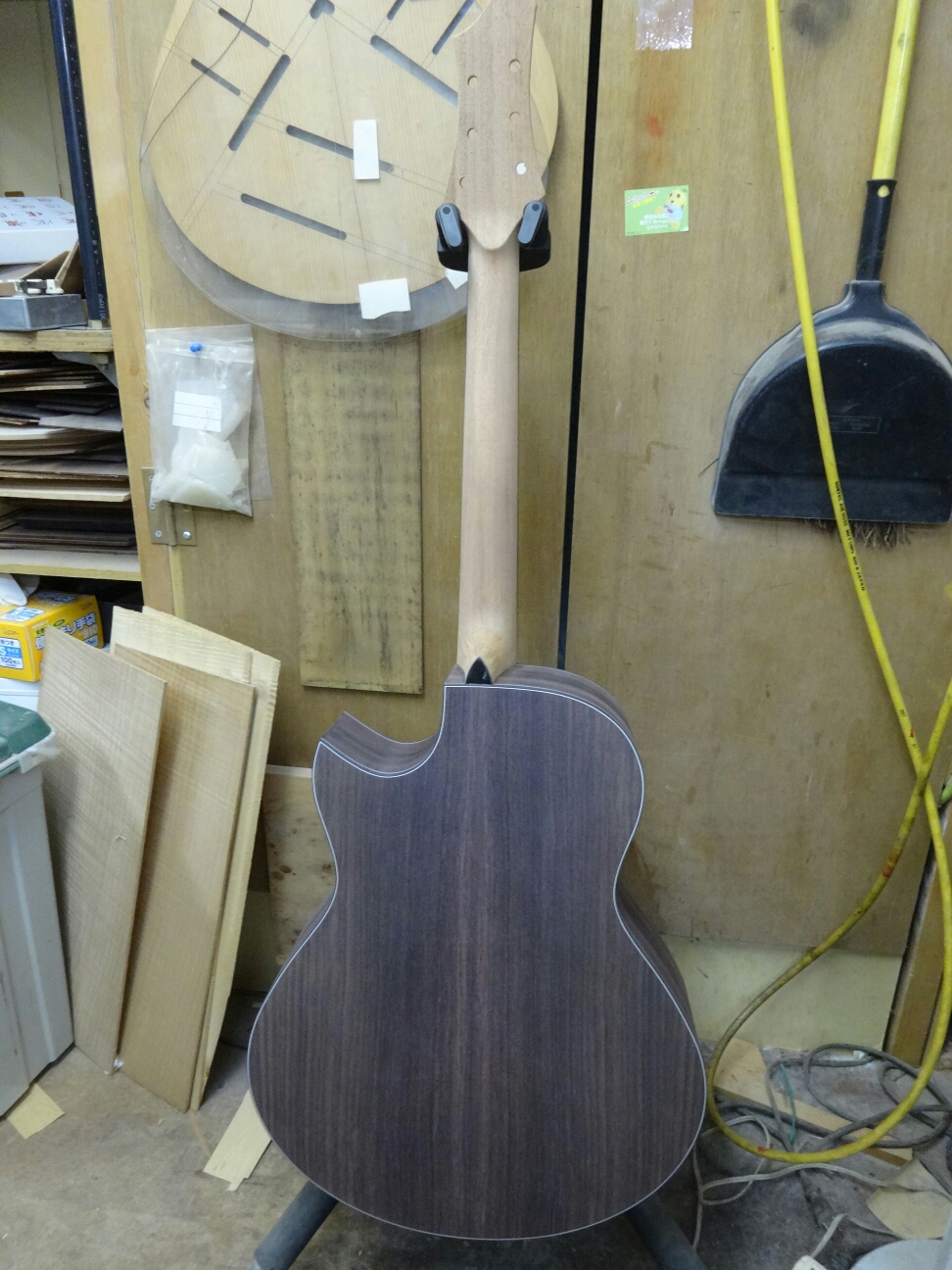 指板貼った後はネックの握りを作って塗装前の木地仕上げ。
