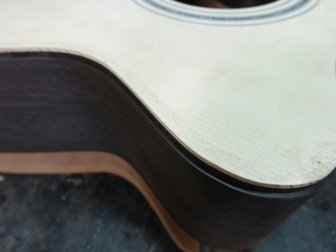 そもそもパーフリング、バインディングはボディの角面の補強が第一の目的。