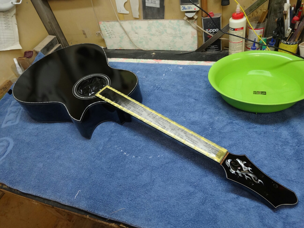 とりあえず製作途中の石成モデルを見せびらかしつつのギター談義。