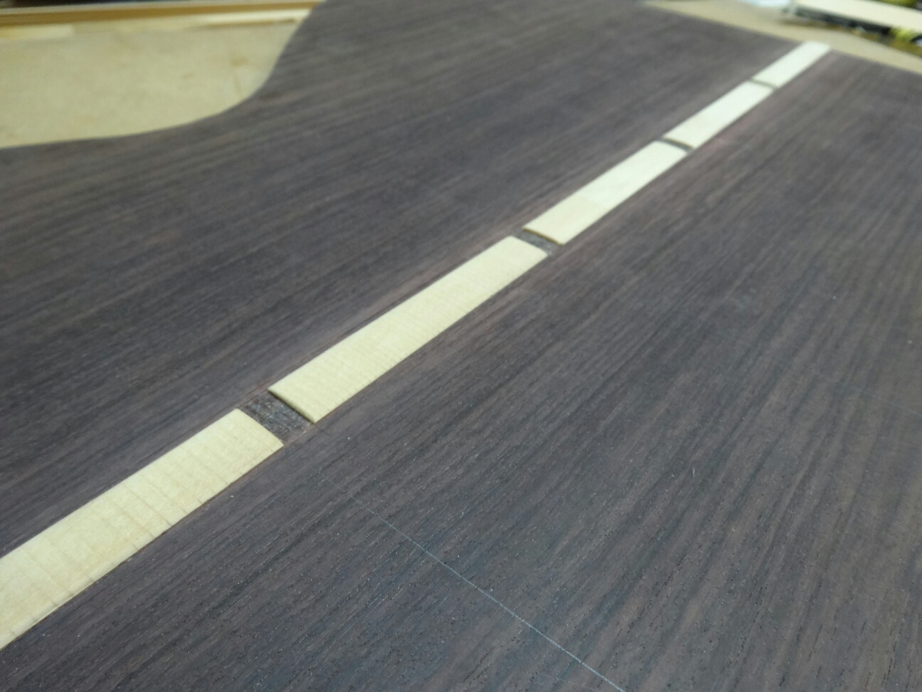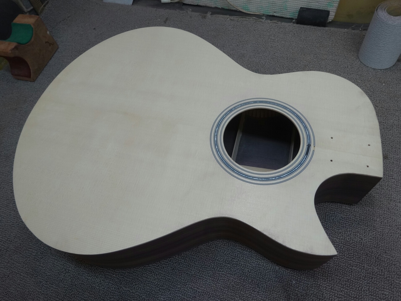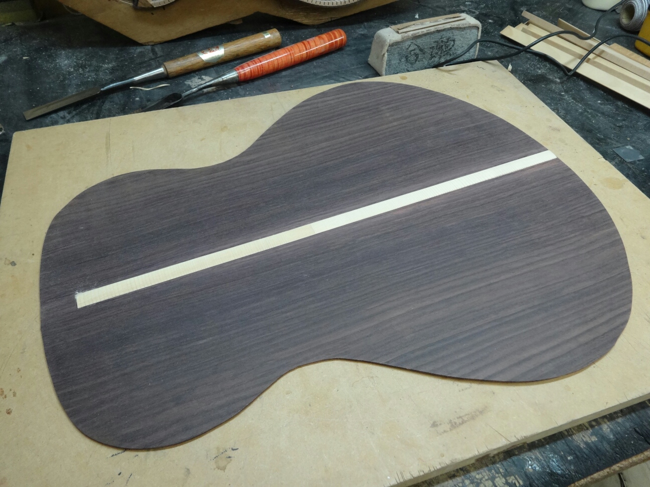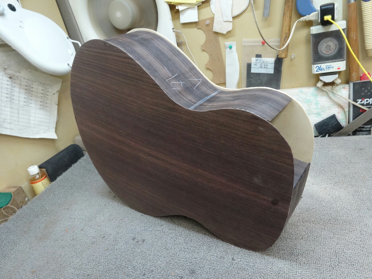 こっちはラウンドバックなのでバック板のカーブに合わせた接着面を作ります。