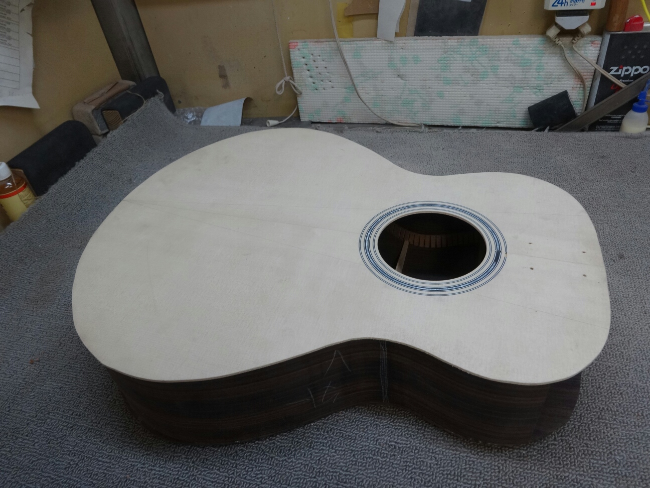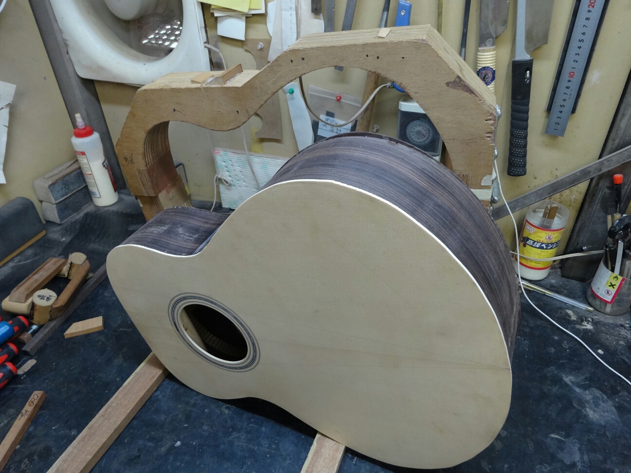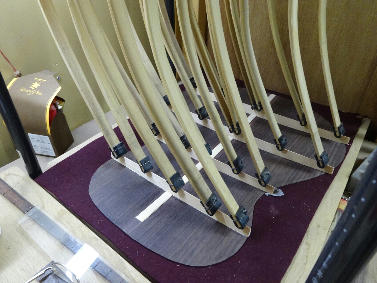 トップ、バックにブレイシングを接着したらお次はサイドと合せてボディにしてしまいます。