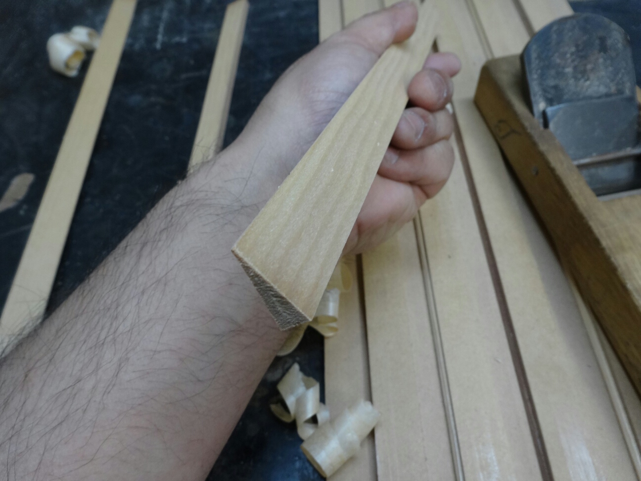 このブレイシング加工について言えば1本1本の木目を見ながら削り出していく事で軽くて強度のある木取りをする事が出来ます。