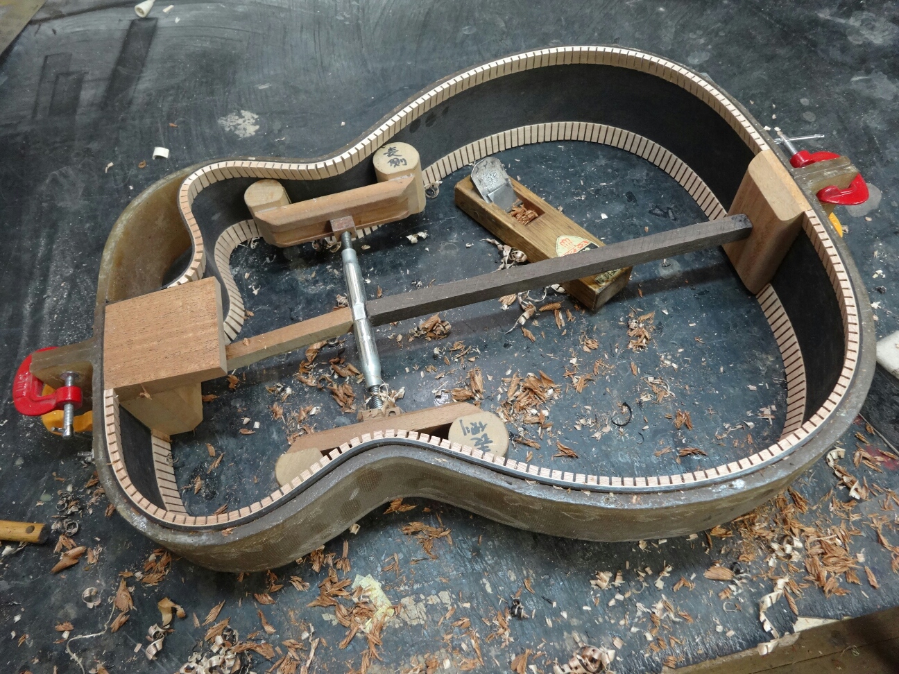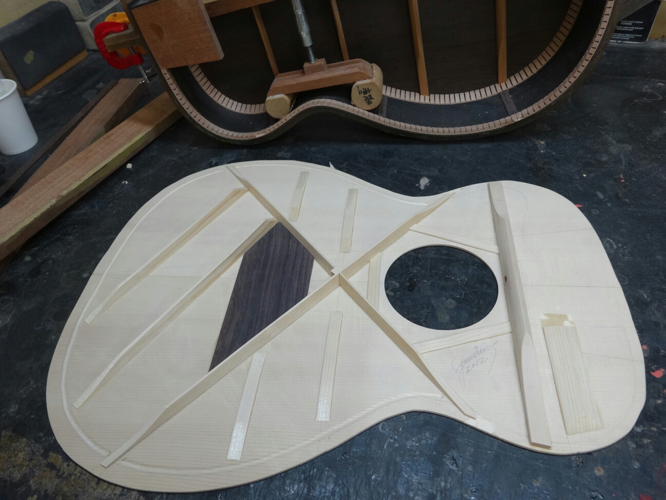 毎回寸分違わず作れる工場とは違って、音を聞きながらをブレイシング削ったりしてるのでこうしないとピッタリに出来ない。